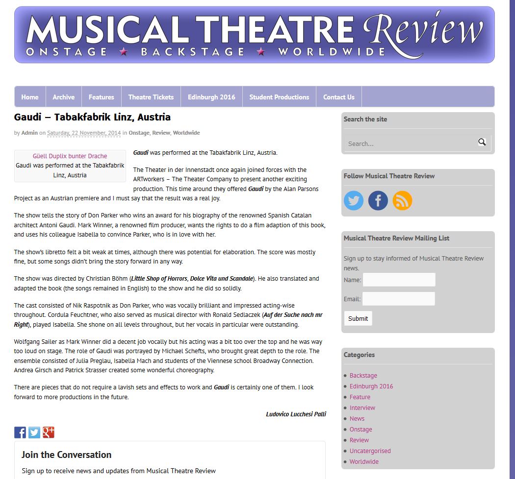 GAUDÍ - DAS MUSICAL (ÖSTERREICHISCHE ERSTAUFFÜHRUNG)