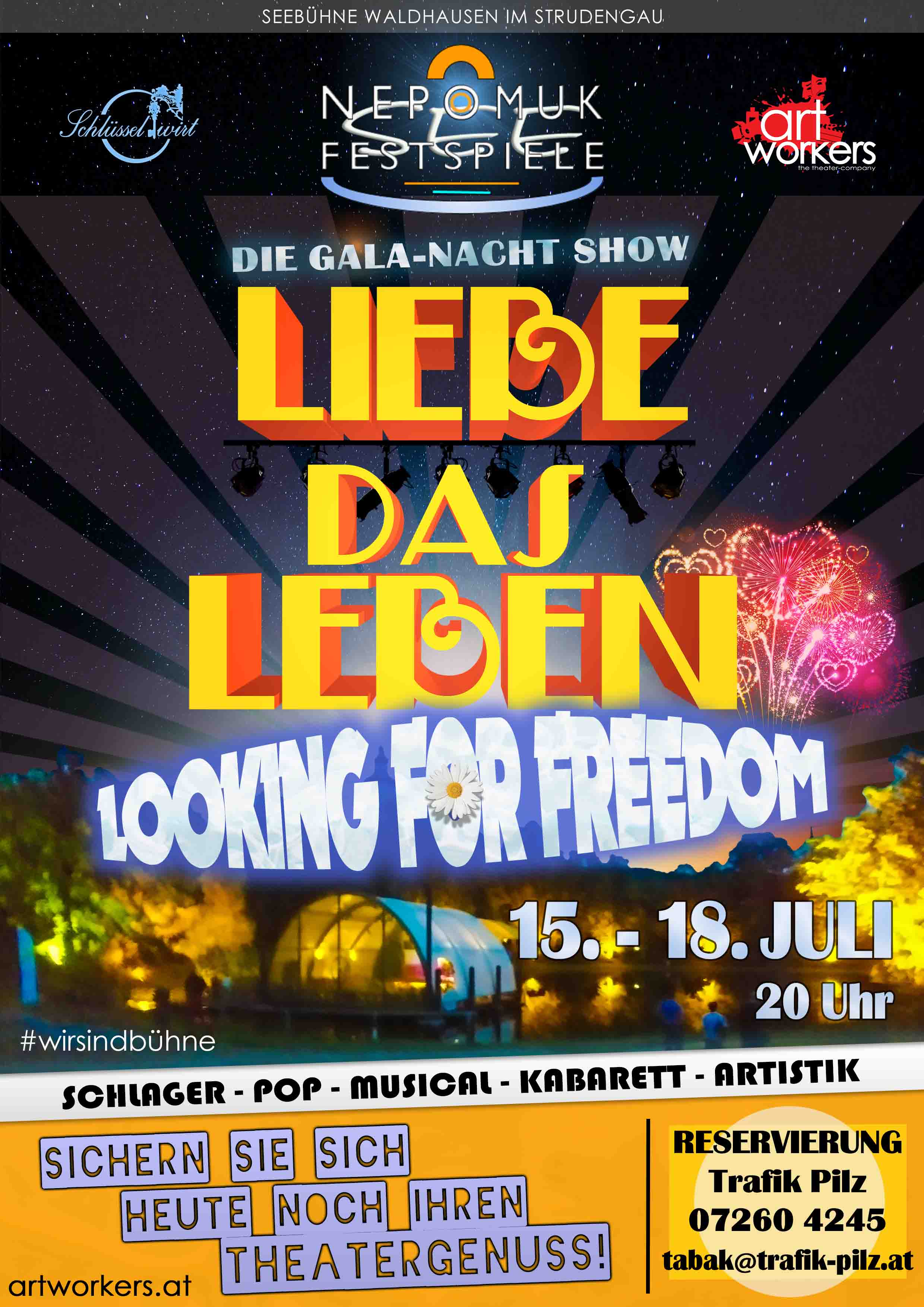 Der Nepomuk(SEE)Festspiele Sommer-Event im Juli auf der Seebühne in Waldhausen im Strudengau!